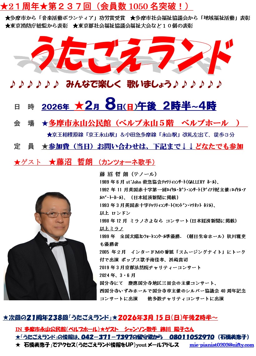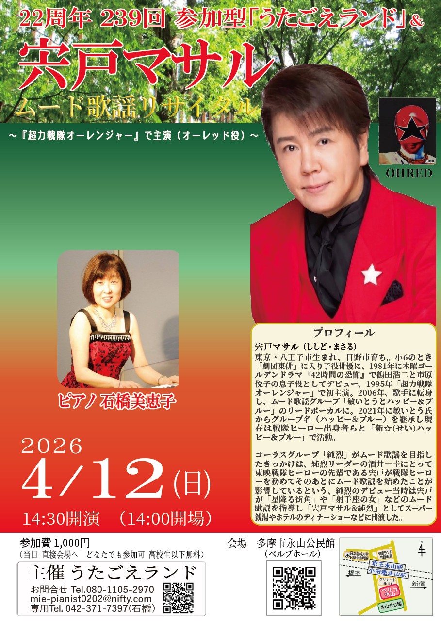 | 石橋美恵子の楽しいうたごえランド地域貢献活動の観客参加型! | |||